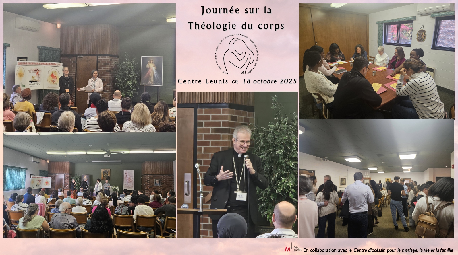 La Journée Théologie du corps du 18 octobre 2025, enseignement de Saint Jean-Paul II sur l’Amour véritable, le sens du corps et de la sexualité, a attiré près de 80 personnes au Centre Leunis. En cette année jubilaire, toutes nos précieuses personnes-ressources étaient au rendez-vous ! Cette fois-ci, particulièrement, la session fut enrichie par l’engagement et l’apport exceptionnel de nouveaux bénévoles issus de la session précédente et, touchés par l’enseignement, appelés à s’engager afin de porter le message aux participants présents.